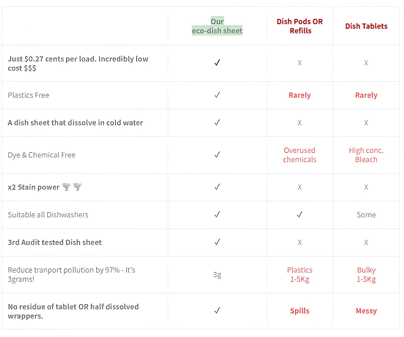 Real results: You get a 5X better & cheaper dish sheet than big brand supermarkets – small price but zero fillers, nasties and plastics